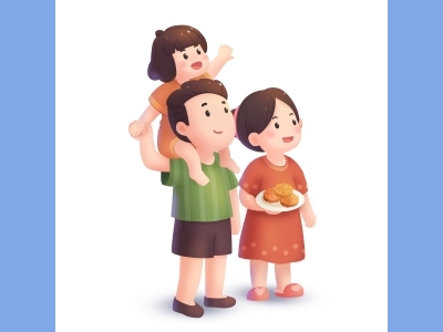 中秋节插画手绘psd格式素材家人