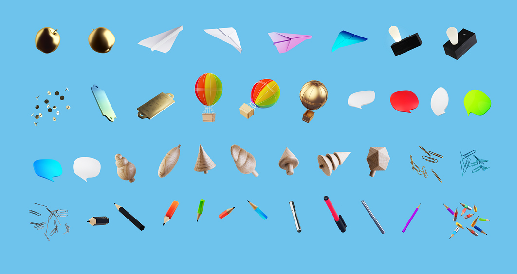 立体元素多巴胺元素铅笔陀螺回形针纸飞机装饰图案