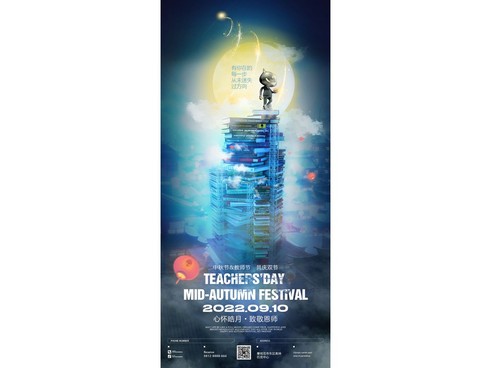 教师节海报教师节插画书堆